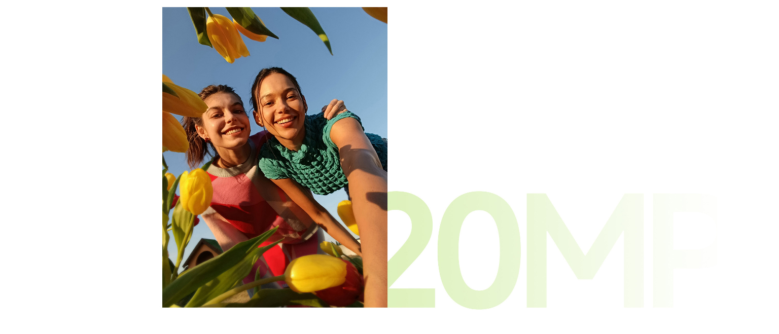 20-мегапіксельна фронтальна камера з режимом б'ютифікації та з удосконаленим алгоритмом групової зйомки не пропустить твою посмішку і допоможе тобі щоразу отримувати чудові фото, на яких ти виглядаєш просто неймовірно.
